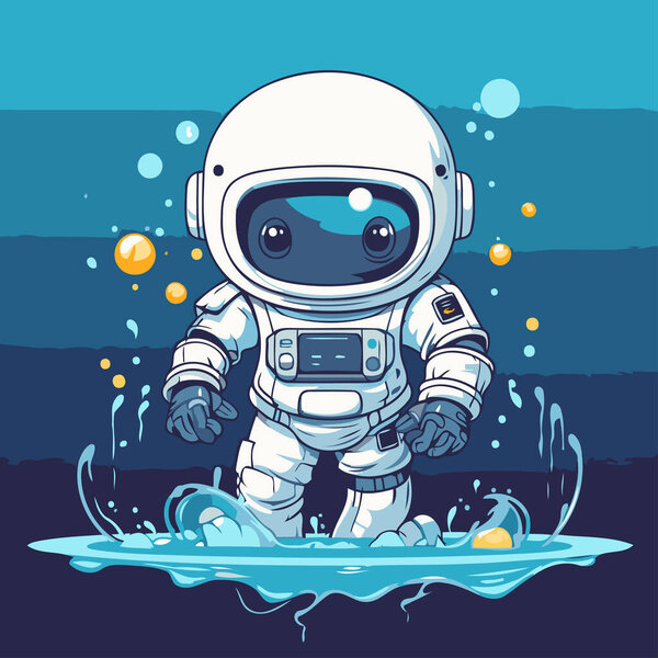 704730154 Astronaut in the water. Vector illustration of a cartoon character.