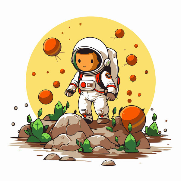 704648106 Astronaut on the green grass. Vector illustration for your design