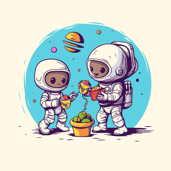 704632586 Astronaut sitting on the ground. Vector illustration in cartoon style.