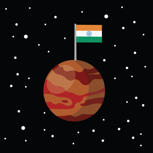 654863946 India flag on mars, abstract orange planet in black background, vector illustration
