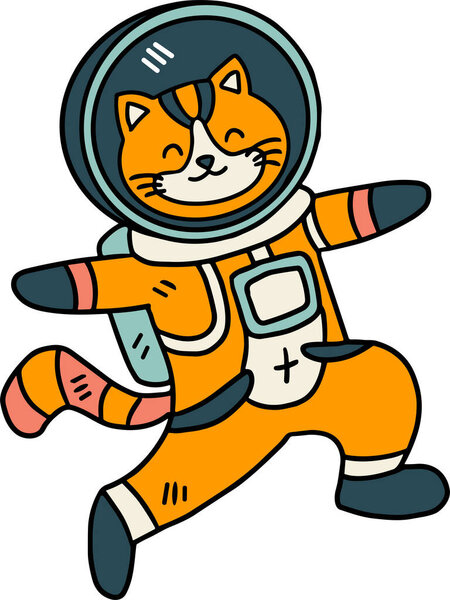 729279018 A cat is wearing a space suit and is floating in space. The cat is smiling and he is enjoying its space adventure