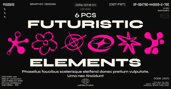 692421598 Retro futuristic y2k shapes design elements. Collection abstract graphic geometric symbols and objects. Templates for notes, banners, stickers, business cards