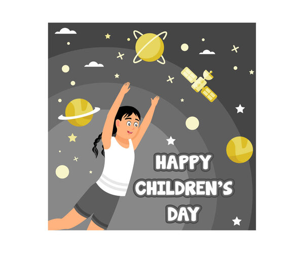 727844848 International children day. Girls dream of becoming astronauts. Children Day concept. Flat vector illustration.
