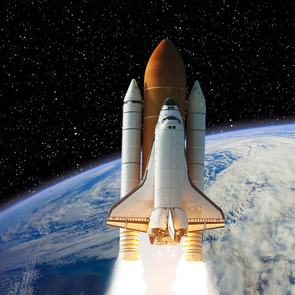 664763150 Shuttle above the earth. The elements of this image furnished by NASA