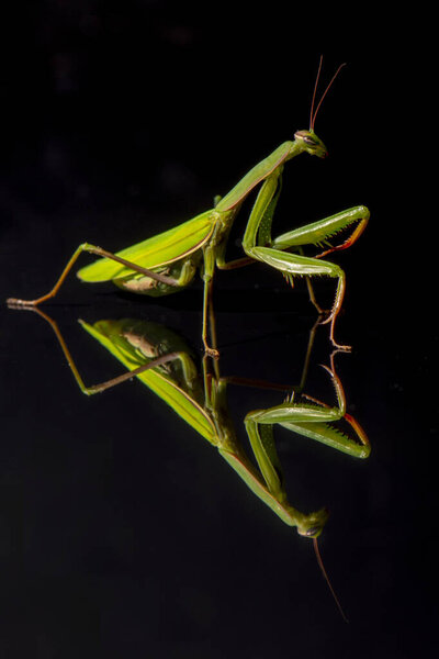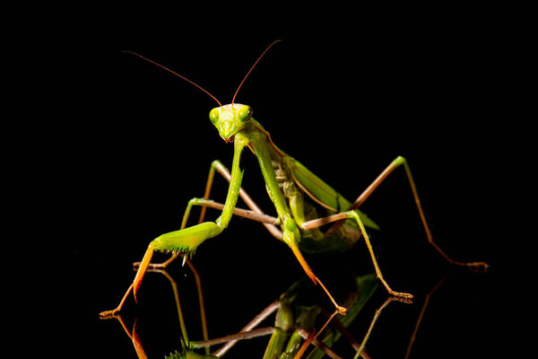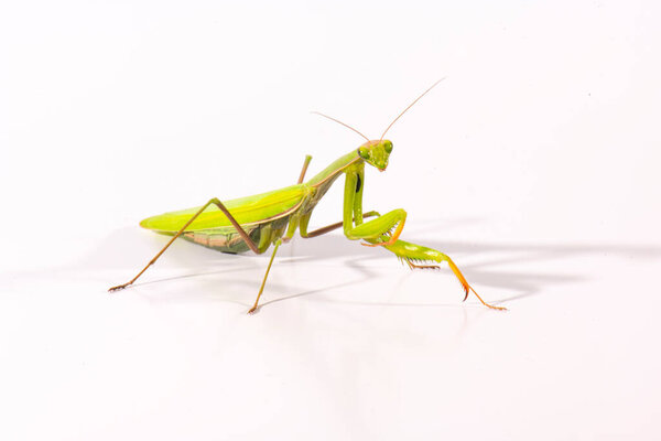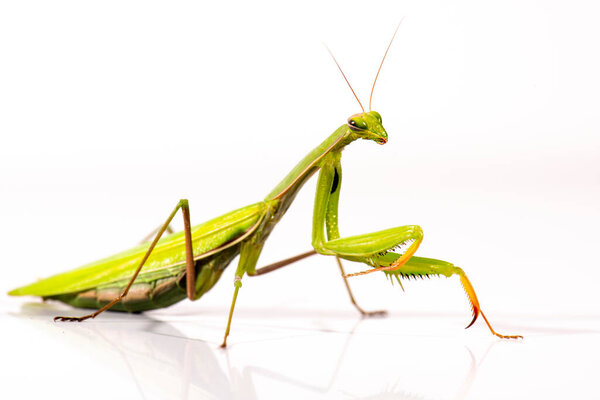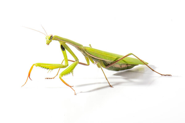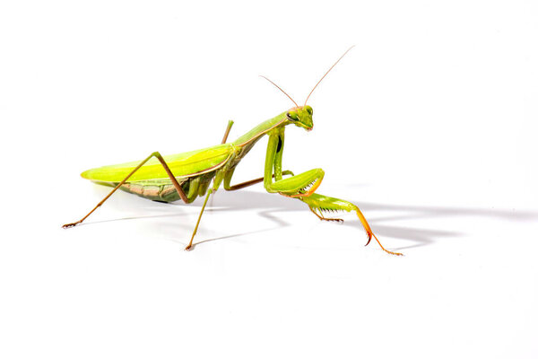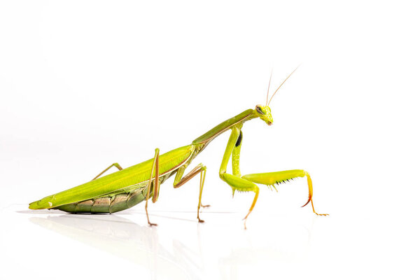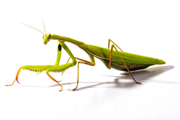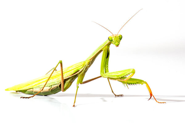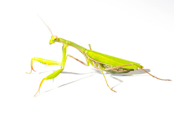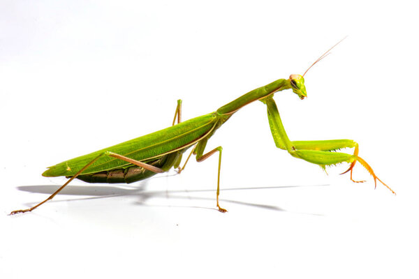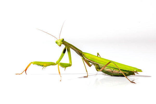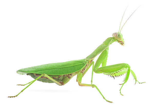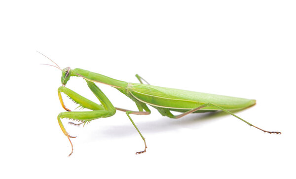 844732280 Green Mantis or or Praying Mantis isolated on a white background. Mantis religiosa, giant Mantis, European Mantis.