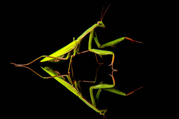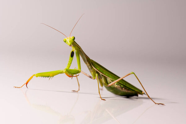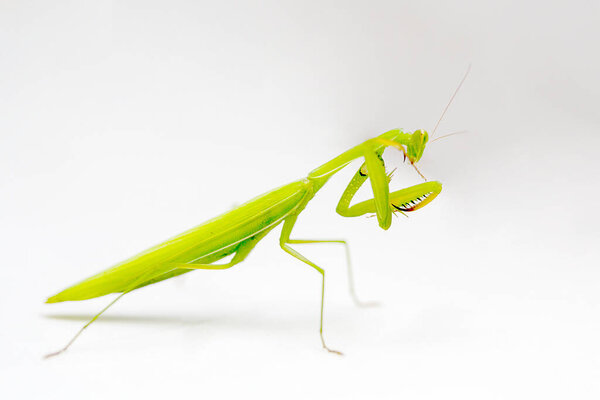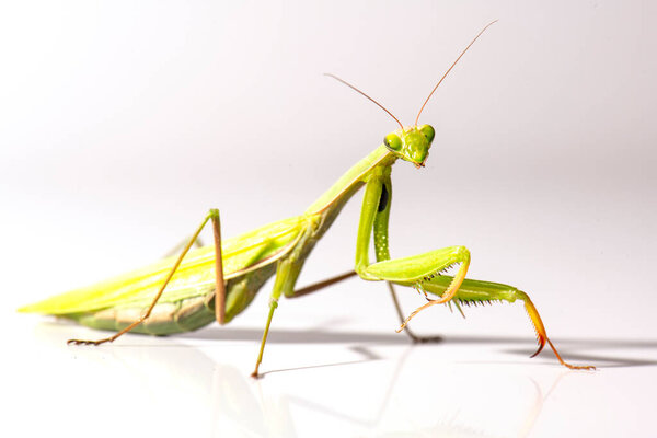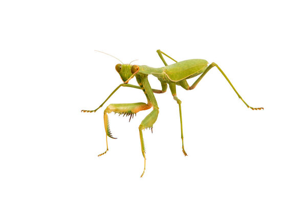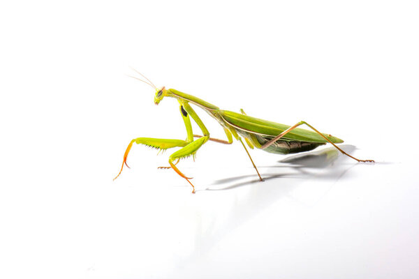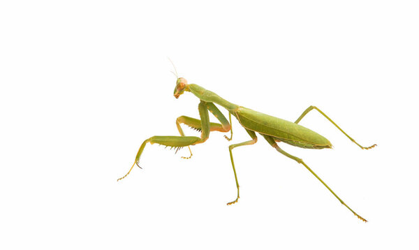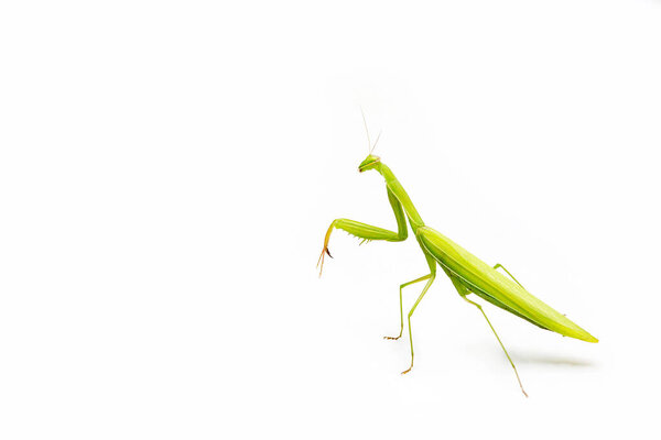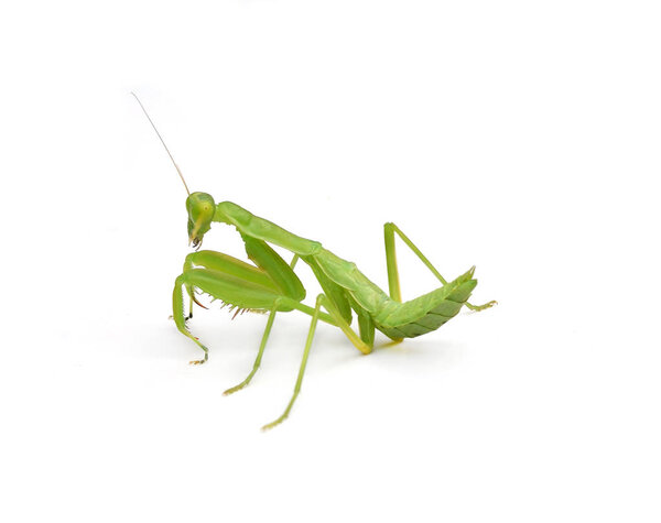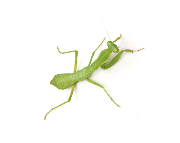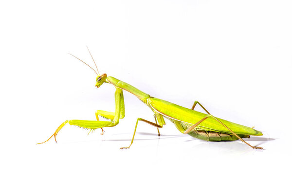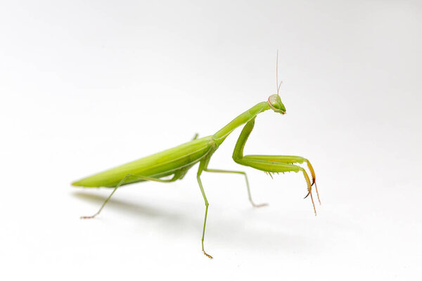384476556 Mantis isolated on a white background. Green mantis on white background.
