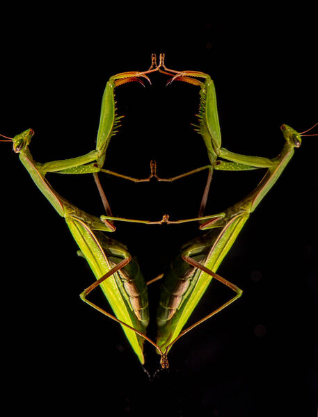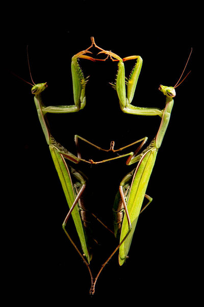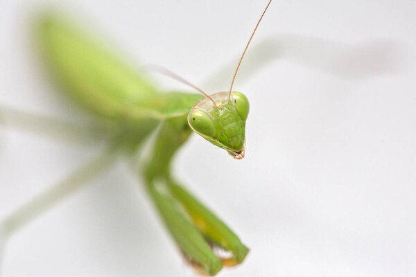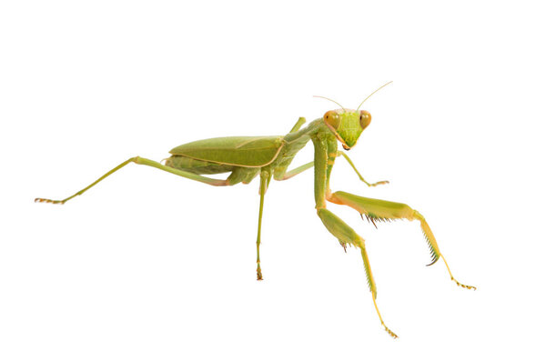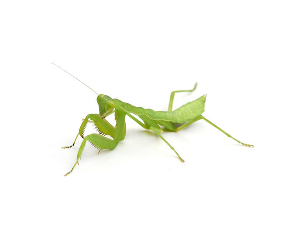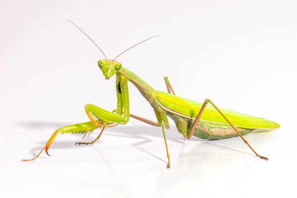 385847402 Mantis isolated on a white background. Green mantis on white background.