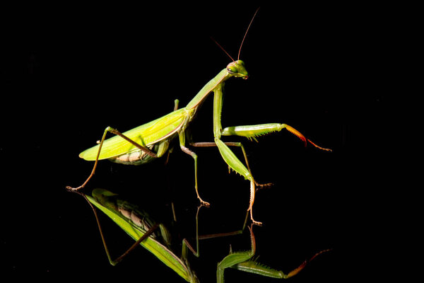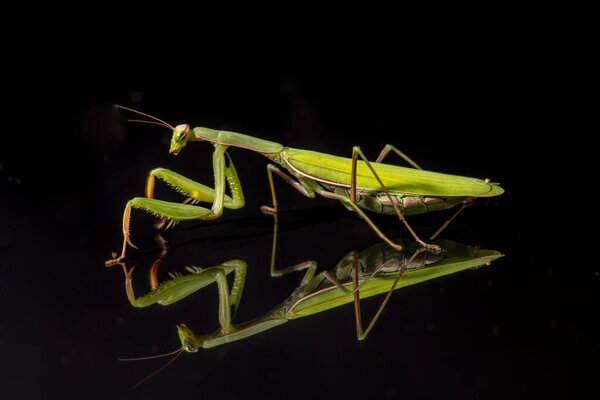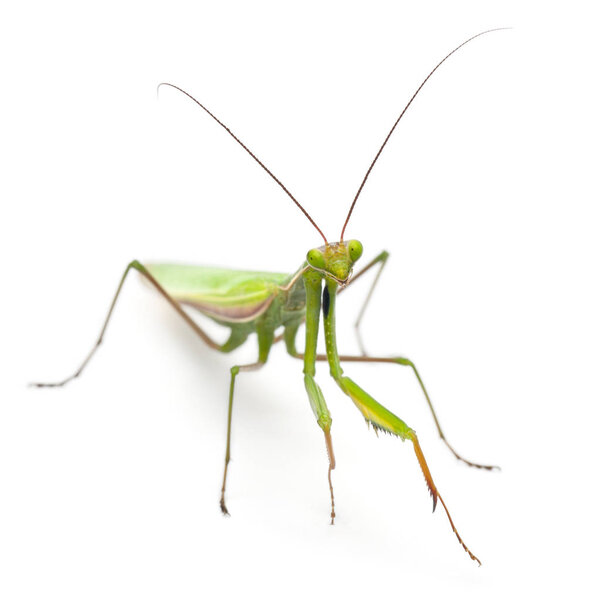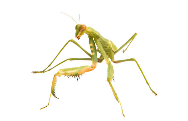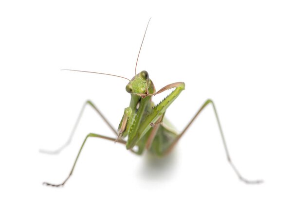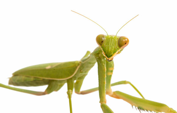 29639145 Female European Mantis or Praying Mantis, Mantis religiosa, in front of white background
