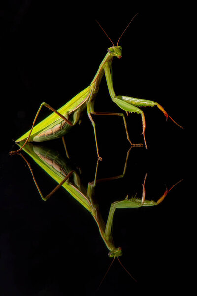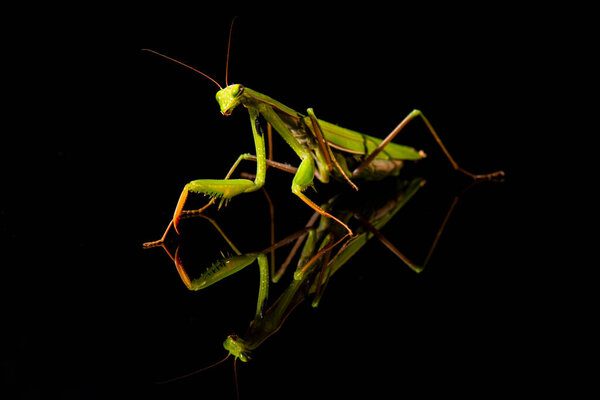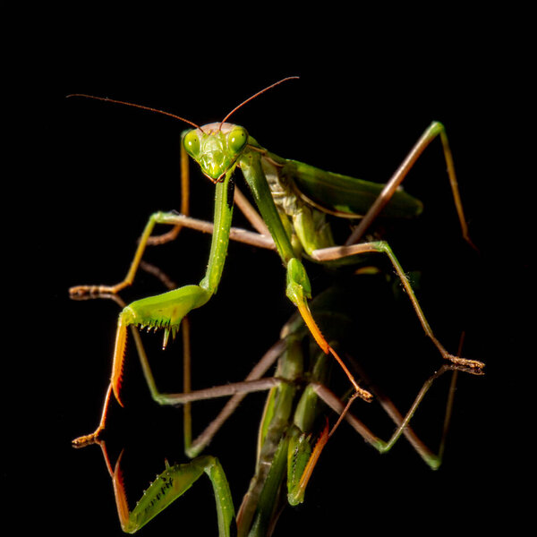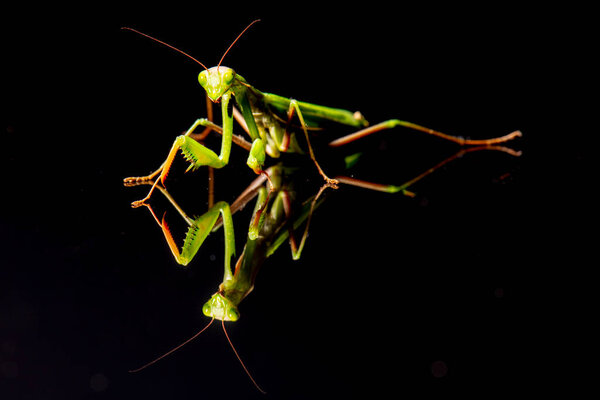 845848872 Green Mantis or or Praying Mantis isolated on a white background. Mantis religiosa.