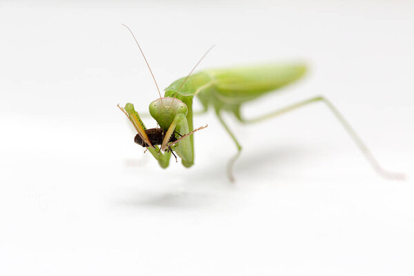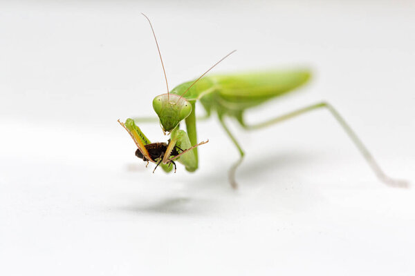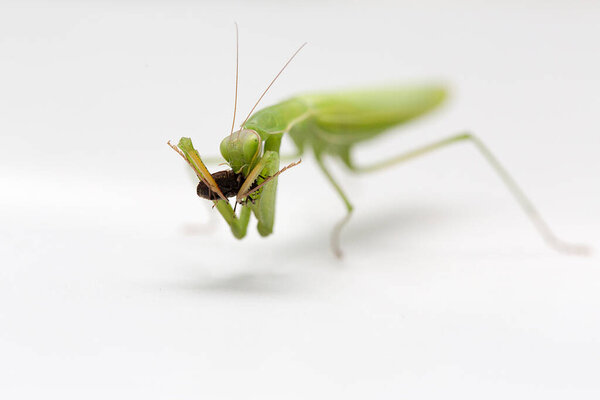 384476600 Mantis isolated on a white background. Green mantis. eat insect.