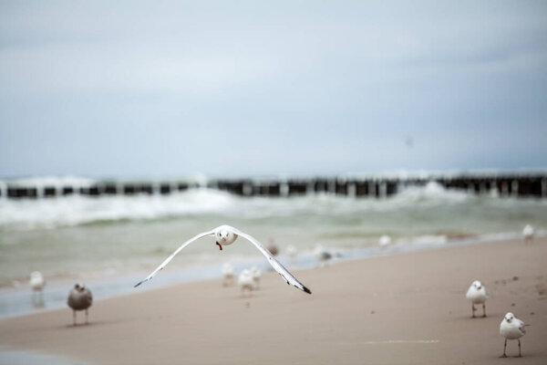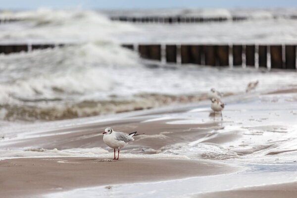 857930524 Beautiful seagull in the natural environment on the Baltic Sea.