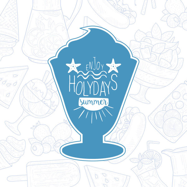 276589274 Enjoy Summer Holidats Lettering with Ice Cream, Inspirational Poster, Banner, Card, Invitation, Logo, Label Vector Illustration, Web Design.