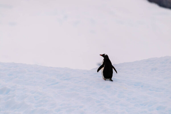 719539132 Close-up of a Gentoo Penguin -Pygoscelis papua- standing on an iceberg near Cuverville Island, on the Antarctic Peninsula