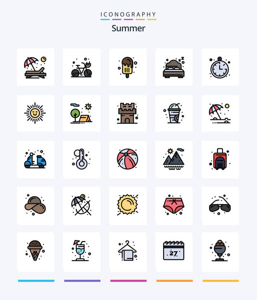 636256002 Creative Summer 25 Line FIlled icon pack Such As location. bed. summer. beach. summer