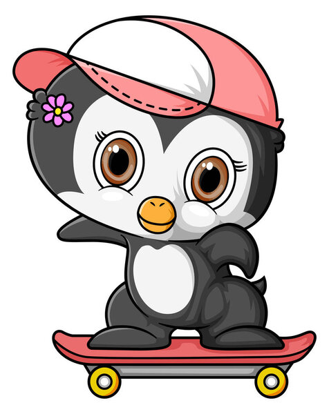 668729166 Cartoon little penguin playing skateboard of illustration