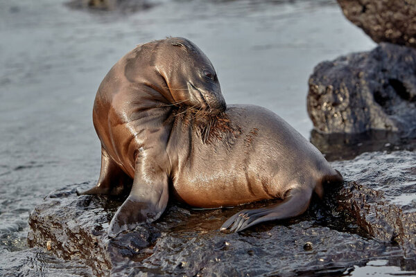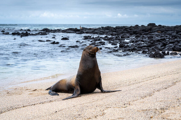 798301204 Galpagos sea lions are among the most playful and charismatic residents of the Galpagos Islands. These pinnipeds can be found lounging on beaches, basking on rocky shores, or swimming and frolicking in the water.