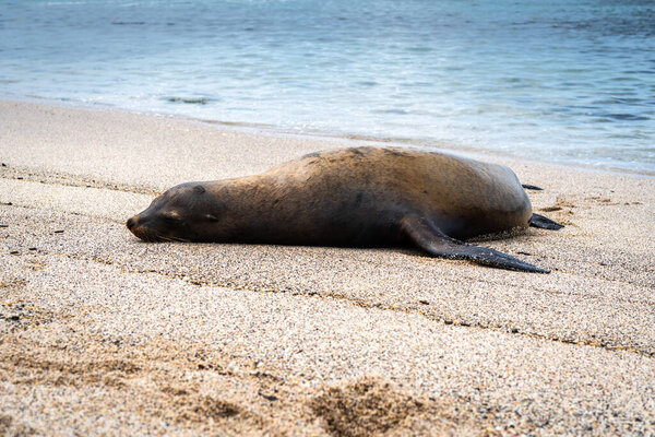 695431458 A sea lion lying on the beach at Galapagos Islands, Ecuador