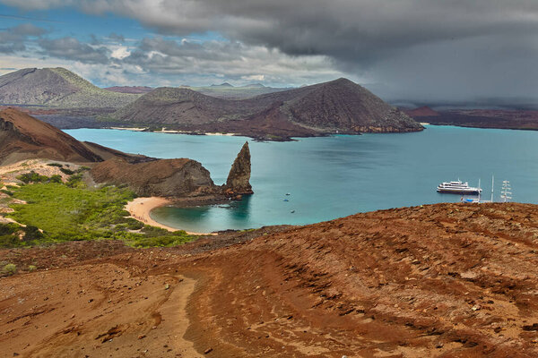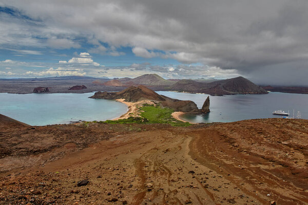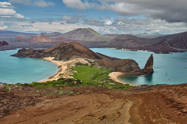 860928046 The most photographed spot in the entire archipelago, Bartolom Island offers a dramatic, lunar-like landscape that serves as the quintessential "postcard" of the Galpagos.
