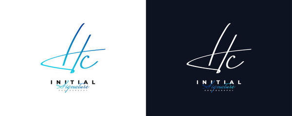 563447766 Initial H and C Logo Design in Blue Gradient with Minimalist Handwriting Style. HC Signature Logo or Symbol for Wedding, Fashion, Jewelry, Boutique, and Business Identity