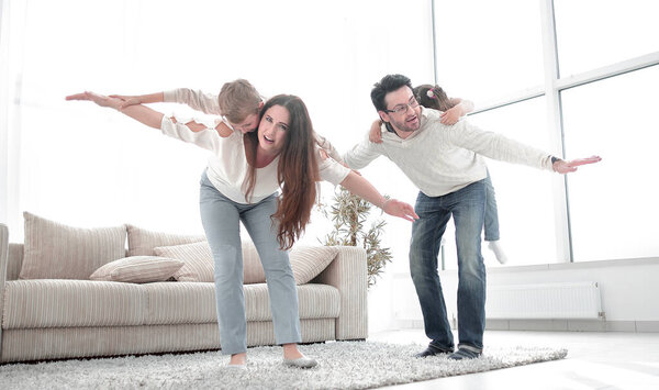 575238572 Loving parents playing with children at their home.the concept of education