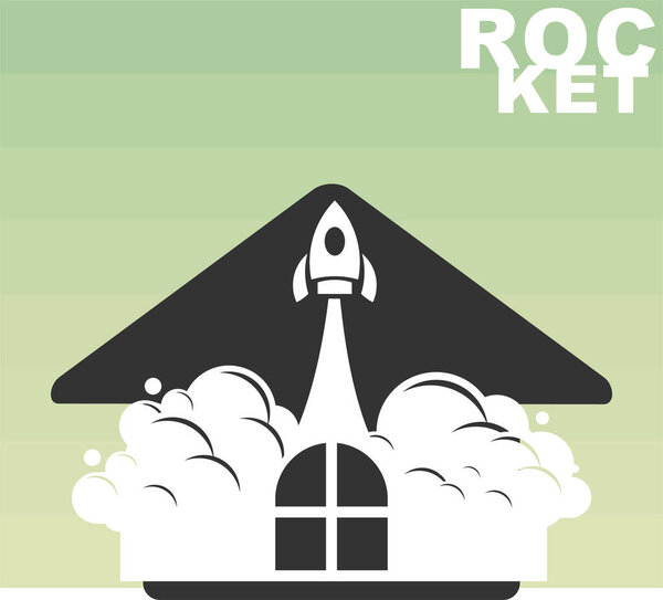 604885882 The rocket is taking off with smoke all around