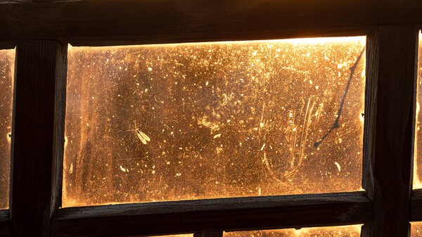 785318260 Insect on dirty window at sunset