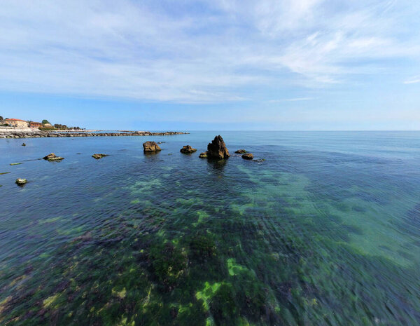 657985396 Aerial view of coast line with rocks. Pedaso, a small village on Adriatic coast, Italy.