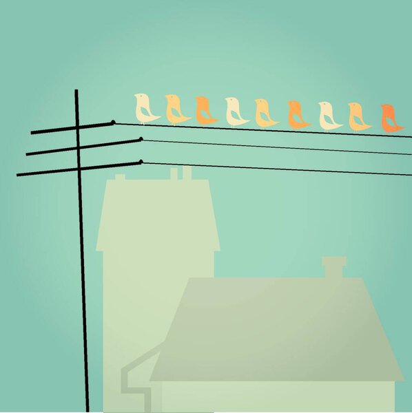 621134528 Birds on lines, colorful vector illustration