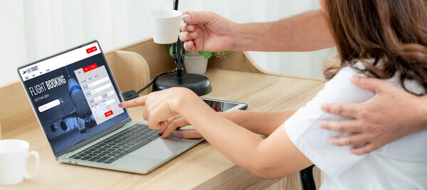 674437512 Online flight booking website provide modish reservation system . Travel technology concept .