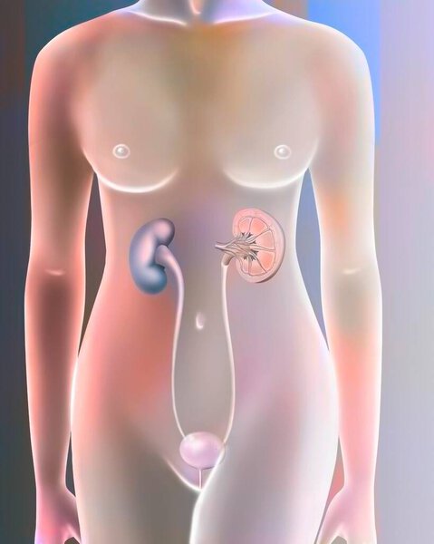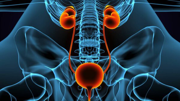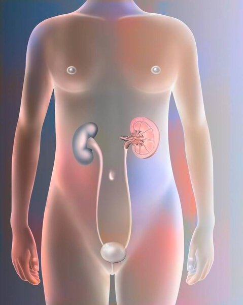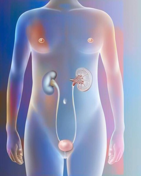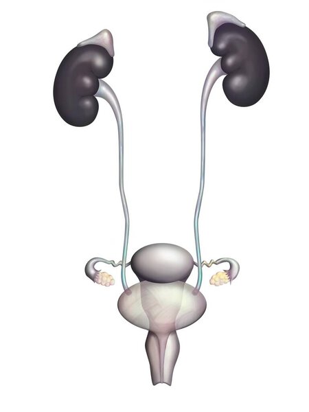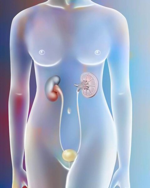598738632 Urinary system in girls (kidneys, ureters, bladder, urethra).