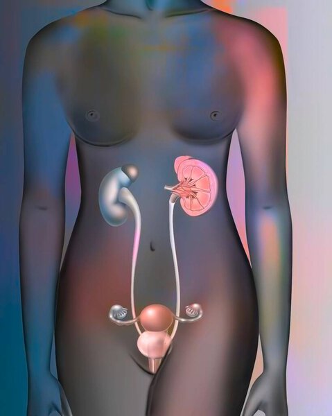 598734224 The urogenital system in women with bladder, kidney, ovaries. .