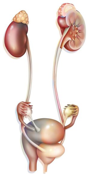598730074 Human urinary and reproductive system with kidneys, bladder. .