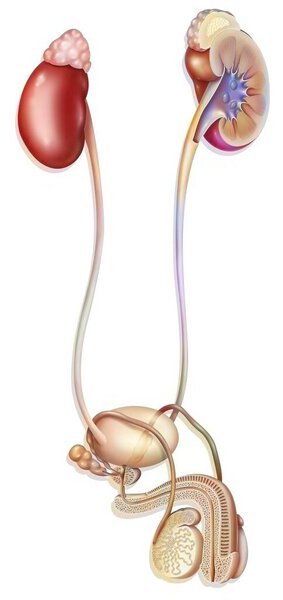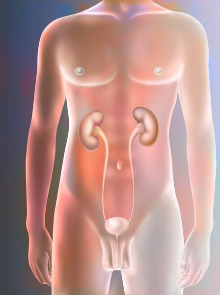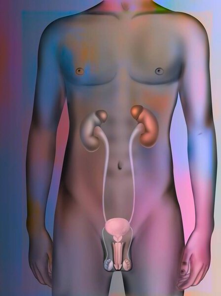 598760560 The male urinary system: kidneys, ureters, bladder, urethra.
