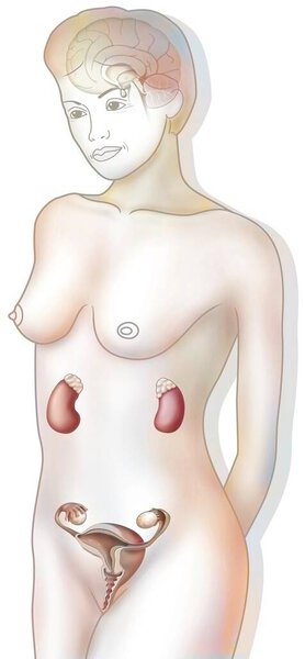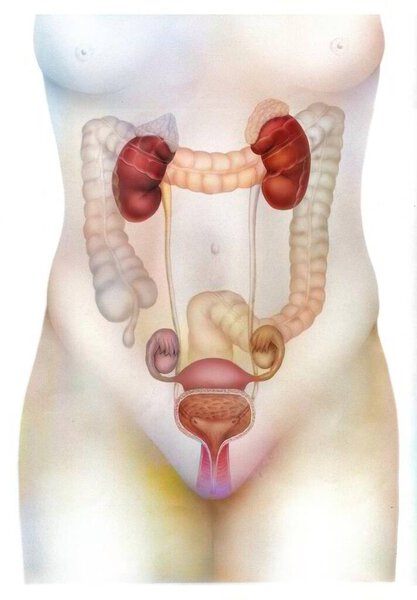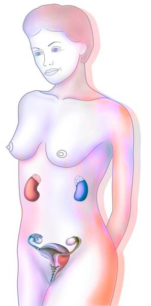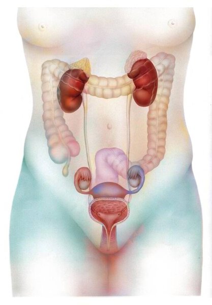 598729566 The urogenital system in women with bladder, kidney, ovaries. .