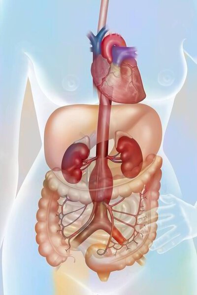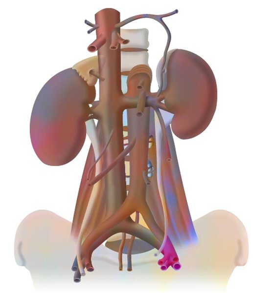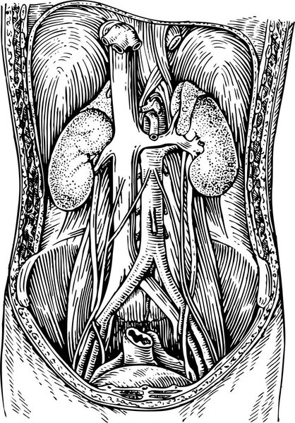 598754134 Anatomy, blood supply and positioning of the kidneys in the body.
