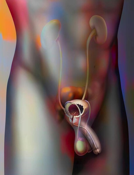 598744954 Anatomy of urogenital system in man with bladder, urethra. .