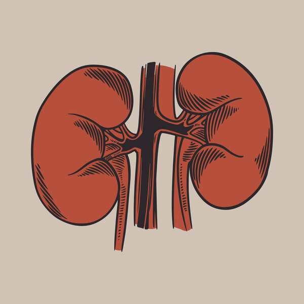 491992776 The human kidney vector hand drawn illustration. Vintage engraved organs, kidneys, ureters, excretory system. Medical anatomy design concept for your projects post viral rehabilitation posters