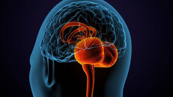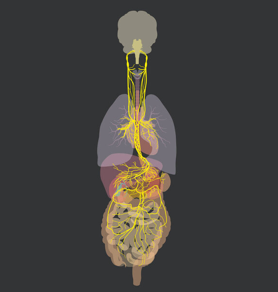 472345703 The 3D illustration showing brain and active vagus nerve (tenth cranial nerve or CN X)