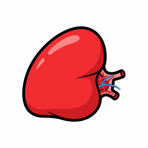 850344102 A cartoon illustration of a kidney, highlighting its anatomical structure and function. Perfect for educational materials or medical illustrations.