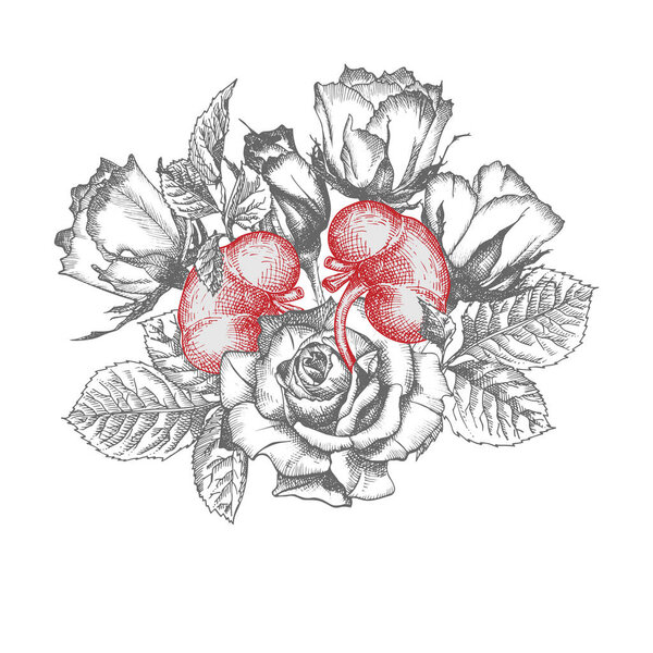 371501996 Kidney with bouquet roses Realistic hand-drawn icon of human internal organ and flower frame. Engraving art. Sketch style. Design concept for medical post-viral rehabilitation posters, tattoos Vector