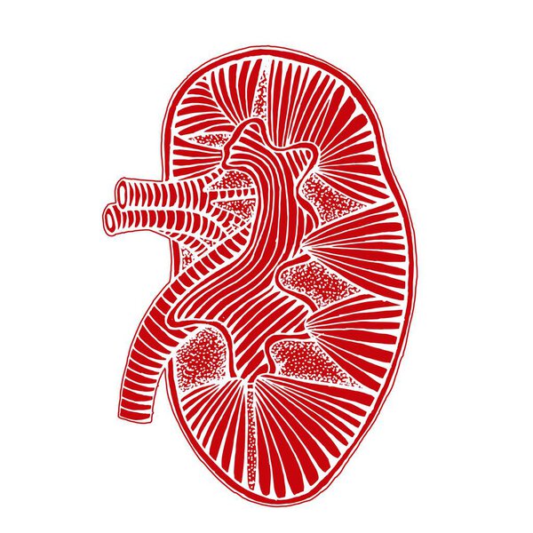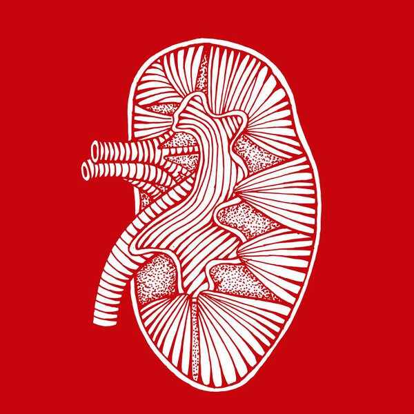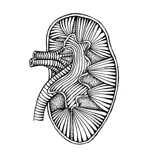 278658976 Hand drawn human kidney drawing reverse illustration with out line