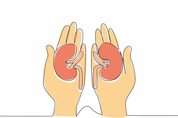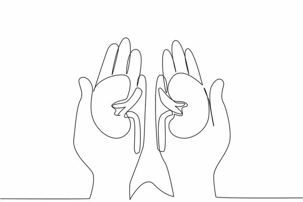 747502096 Single continuous line drawing the kidney hold in each hand. The concept of maintaining for the kidneys. Stay healthy with a healthy lifestyle. World Kidney Day. One line design vector illustration