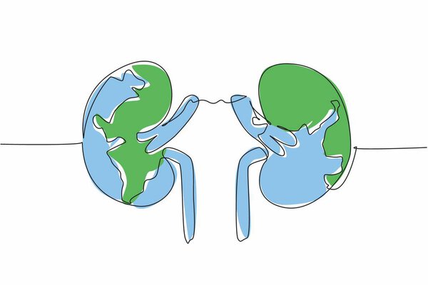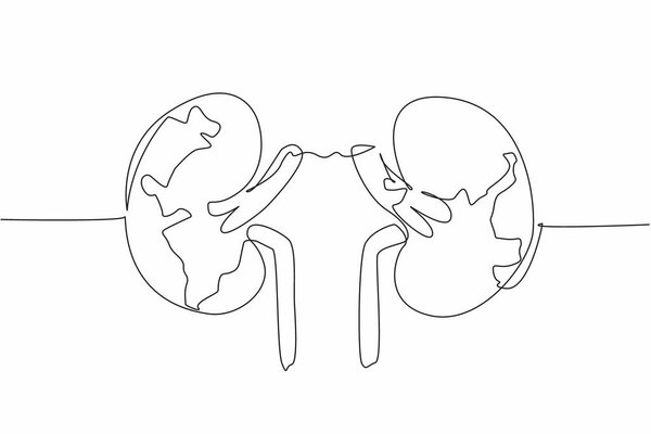 747502110 Single one line drawing kidneys with the contour of the earth. Should be more concern about kidney health. Prevention is better than cure. World Kidney Day. Continuous line design graphic illustration