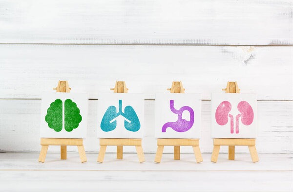 788662406 Human Organs Illustrated on Mini Easels for Medical and Educational Purposes