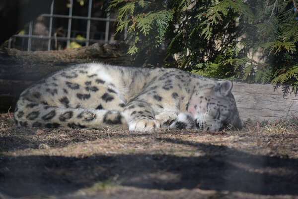 578537710 A sleeping snow leopard in a zoo