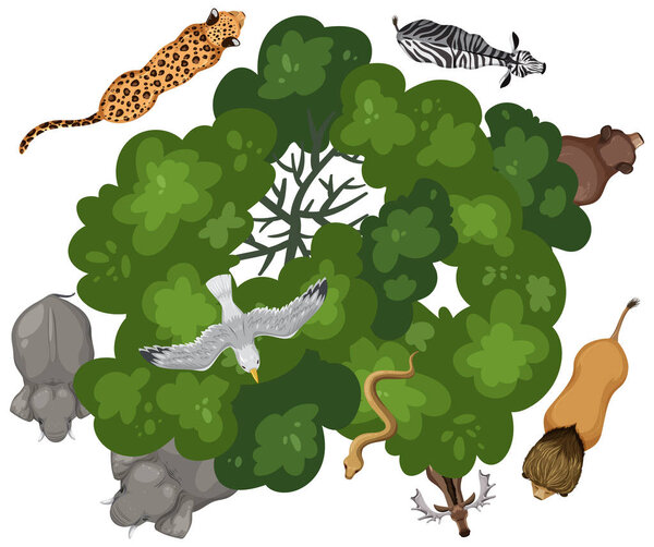 794658336 Various animals encircle a lush green tree
