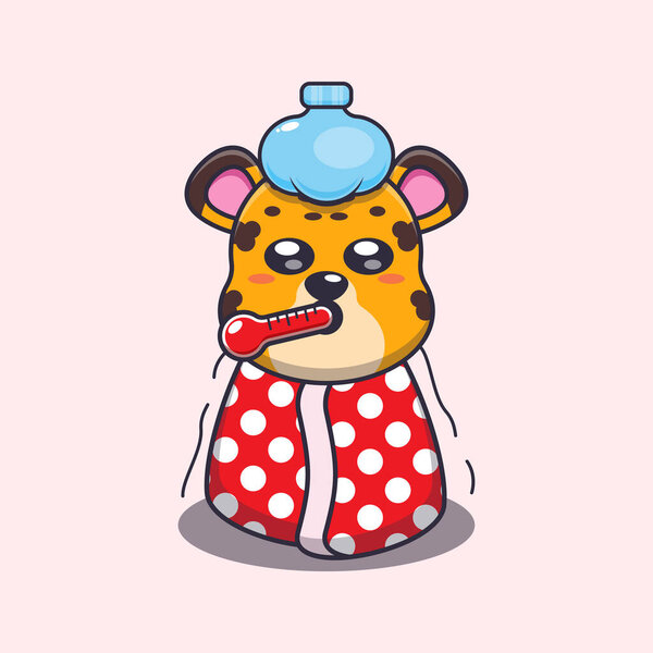 655755242 Cute leopard is sick cartoon vector illustration.