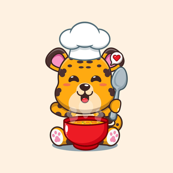 660166948 Chef leopard cartoon vector with soup.