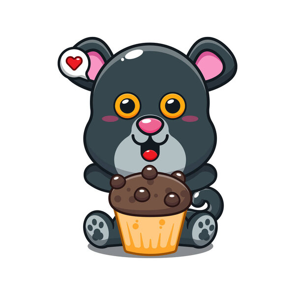676503278 Cute panther with cup cake cartoon vector illustration.