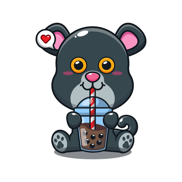 676503312 Cute panther drink bubble milk tea cartoon vector illustration.